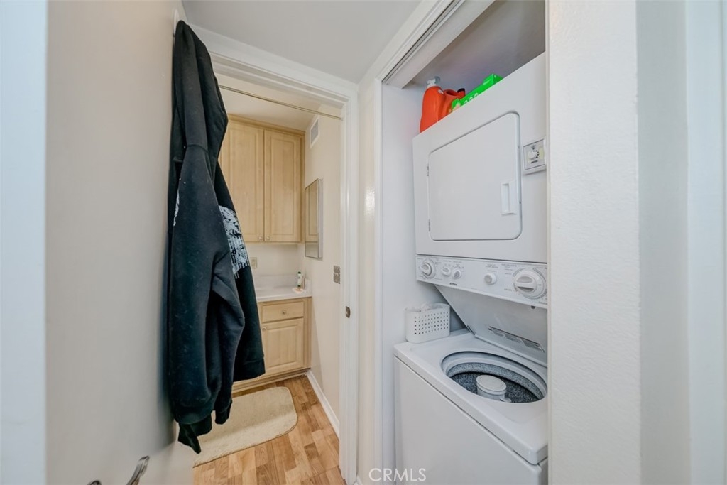 Crosspointe gated community with a live guard. Charming one level condo, situated near the front main gate and one of the community swimming pools. The kitchen and bathroom are remodeled. Newer central a/c, furnace, floors, washer and dryer, ceiling fan and recessed lighting. The living room is open concept to the kitchen with plenty of cabinets. The condo has one reserved parking space. This beauty won’t last. It is nearby the 22 fwy and many restaurants.