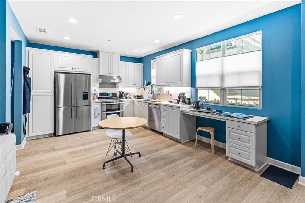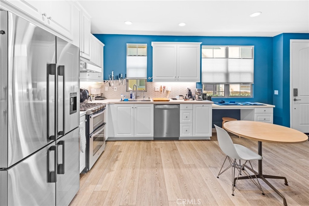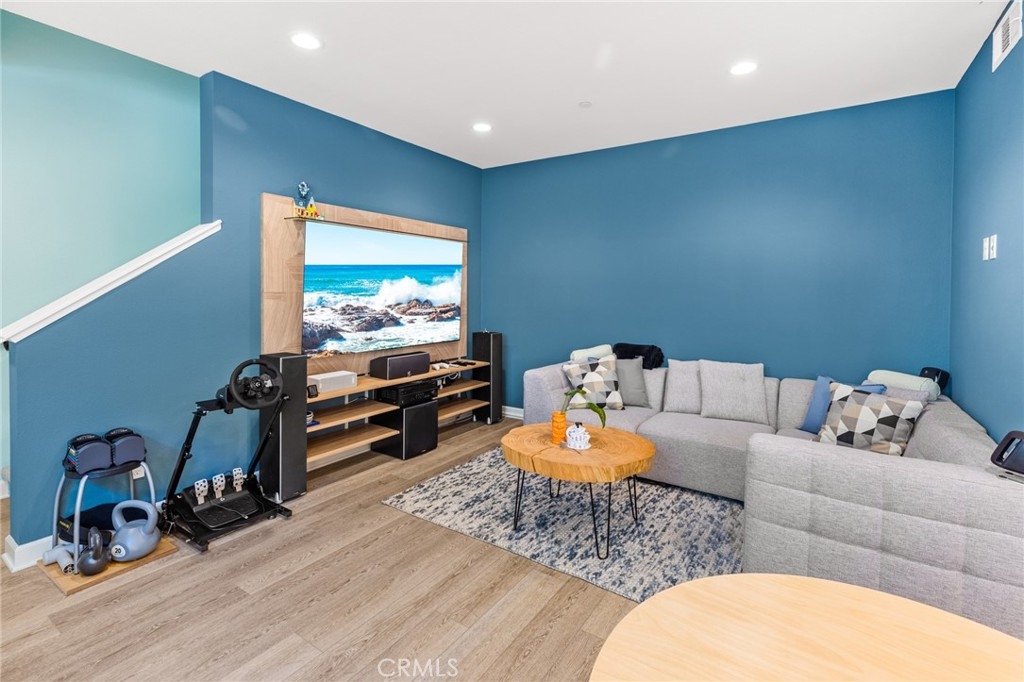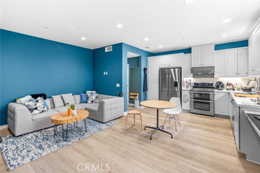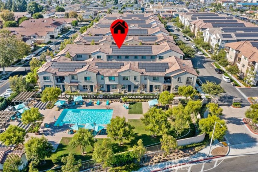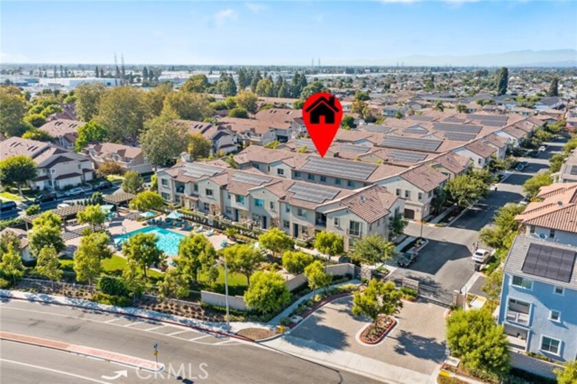 Welcome to Lantana @ Beach! This newer, large 2 bedroom, 2.5 bath, 2 story townhome has modern features you will fall in love with. Open floor plan with accent walls, high ceilings with recessed lighting and large windows for natural light. The designer kitchen opens to the living room and features quartz counter tops and modern white cabinetry. Two spacious bedrooms both with walking closets, upstairs laundry room. You will also find luxury vinyl plank flooring downstairs and luxury carpet upstairs, Lutron dimmer switches, central air, and more. The home is equipped with energy efficient features such as a solar system, tankless water heater, and tinted dual pane windows to name a few. There is an enclosed patio perfect for a weekend BBQ, and an attached two car garage with plenty of storage. Enjoy the pool and lounging on the spacious deck. Connect with your neighbors at outdoor social spaces and the play area. Or stroll to Rodeo 39, the retail hub next door with hip eateries, shops, fitness, and public art. This home is close to everything you love about Orange County. Quick access to the 22, 405, & 5 freeways. Next door to Garden Grove and Huntington Beach, and less than 30 minutes to Irvine. Low HOA fees and No Mello Roos. You will enjoy living at Lantana!
