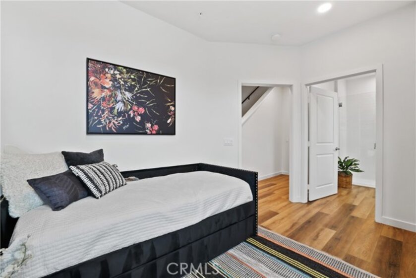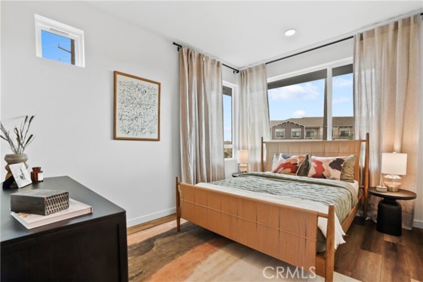 New construction townhome in a gated community by Bonanni Development in Stanton. Located close to Rodeo39 and the 22 Freeway off Beach Blvd. This is a quiet location that has a view to the community park amenity. The townhome has 3 bedrooms and 3.5 bathrooms, with one bedroom and full bathroom on the entry level. Plus a two car, side by side garage. Everyone loves the great room design with a wonderful private deck. Beautiful kitchen with large island, quartz countertops and stainless steel appliances. This home is priced to sell for an end of the year move-in! Built with state-of-the-art technology, high speed wiring throughout, plus new appliances, cabinets and flooring. This gated community will have three unique parks for homeowners to enjoy. SOLAR PANELS INCLUDED in price pictures are of model home