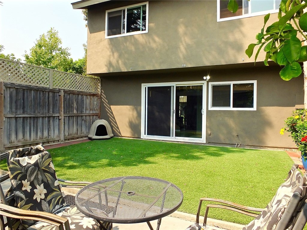 This lovely, quiet end unit town home is waiting to you to move in! Newly customized kitchen was taken down to the studs during the remodel! The kitchen complete with ample granite countertops and lots of cabinet space; overlooks the private enclosed patio. The newer appliances, fridge and washer and dryer, are included for your convenience. Both bathrooms have been updated with custom tile and granite countertops. Wood like laminate flooring is downstairs. All 4 bedrooms upstairs. A large private 2 car garage is just beyond the oversized patio. This complex is close to shopping and restaurants. Huntington Beach is only a 15-20 minute drive! The grounds are well maintained and tranquil. Once you arrive you will want to call the location home!