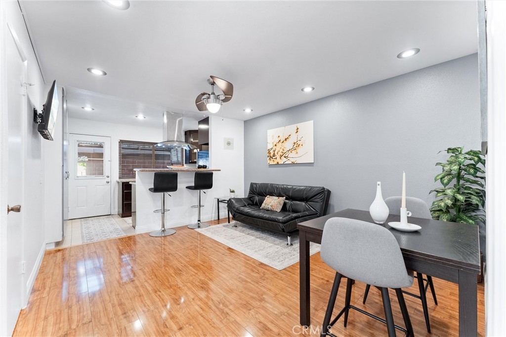 Welcome to Orange County's best valued 2 bedroom condo! This beautifully converted 2-bedroom, 1-bath condo located in the quiet rear end of the Edgewood Manor community. Originally a 1-bedroom, this remodeled downstairs unit has been redesigned to maximize space and comfort. Enjoy the convenience of in-unit laundry, dual pane windows, recess lightning, updated electrical panel, laminate floors, fresh interior paint, an open-concept living area, walk in shower and a well-appointed kitchen with granite countertops. One of the standout features of this home is the direct access to the carport, making parking and unloading groceries a breeze. The fully covered patio has laundry hook ups and plenty of storage! Low HOA which covers in-unit laundry, water and trash service. Safe, gated and clean community with security cameras on site. 2 permitted parking spaces: one assigned carport & one first come, first served. Centrally located in Orange County, close to plenty of shopping, dining, and 5 minutes from Knott's Berry Farm. Enjoy the amenities such BBQ grilling areas, bike storage, swimming pool, clubhouse and a peaceful greenbelt. With its prime location and plenty of amenities, this MOVE-IN-READY home won’t last long. Schedule your showing today!