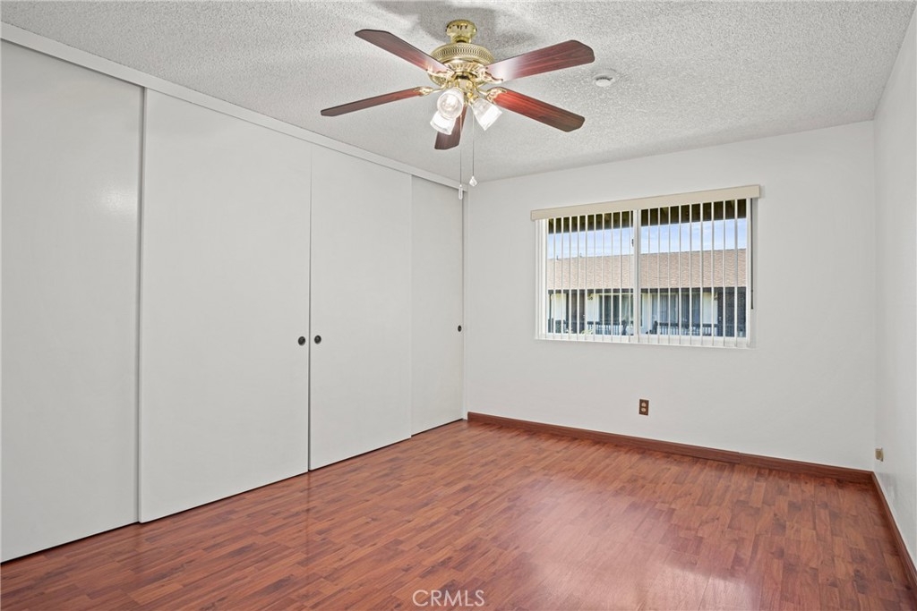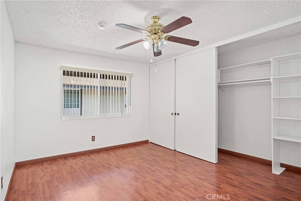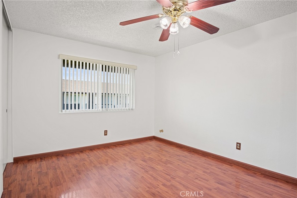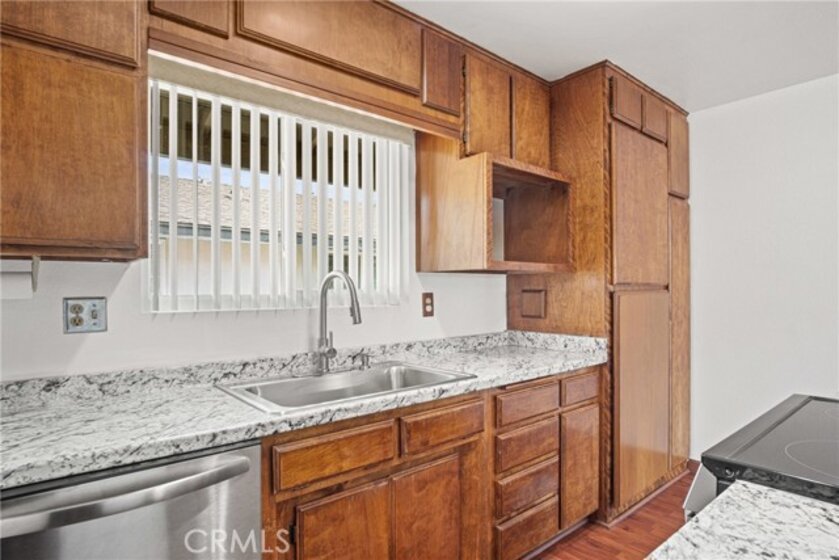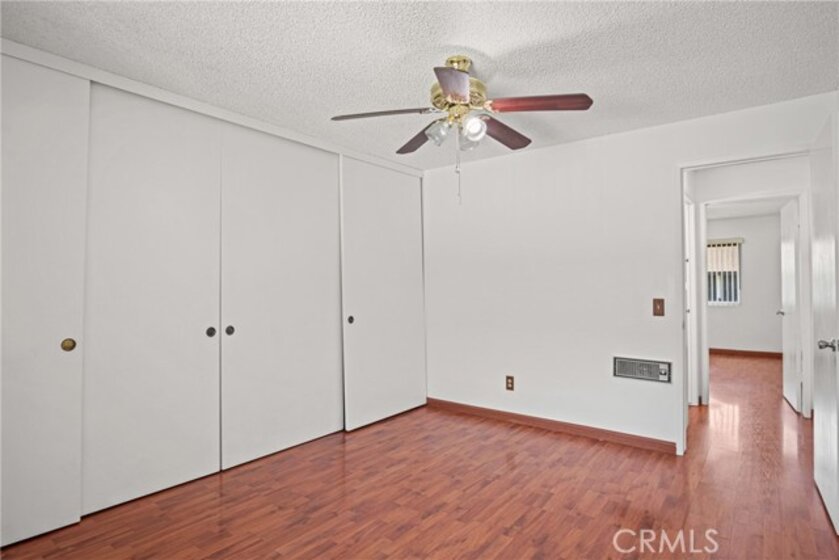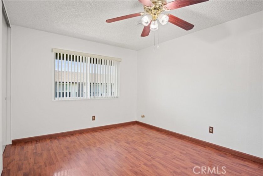 Welcome to this beautifully updated 2-bedroom, 1-bath home offering 825 square feet of comfortable living space in a gated community. Recently refreshed with new interior paint and laminate wood flooring throughout, this move-in ready unit combines modern upgrades with everyday convenience. The fully renovated kitchen features a brand-new countertop, oversized single-bowl sink with a stylish arching pull-out faucet, new garbage disposal, new dishwasher, and a new LG electric induction range with a brand-new range hood. There is also a designated cabinet space for a microwave with a seperate space for tackable Washer and dryer hookups to add extra functionality. The spacious living room includes a newer wall A/C unit and ceiling fan for year-round comfort. Updated window treatments with vertical blinds are included throughout. The bathroom was renovated approximately 2–3 years ago and features a walk-in shower, new vanity, updated light fixtures, new toilet, and upgraded exhaust fan. Brand-new smoke and carbon monoxide detectors have been installed in each bedroom and common sleeping areas for added safety. Community amenities include a pool, relaxing spa, lounge chairs with umbrellas, BBQ area, benches, and a convenient app-operated laundry facility located near the pool. A wonderful opportunity to own a thoughtfully upgraded home with resort-style amenities.