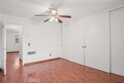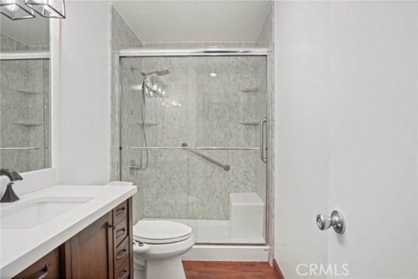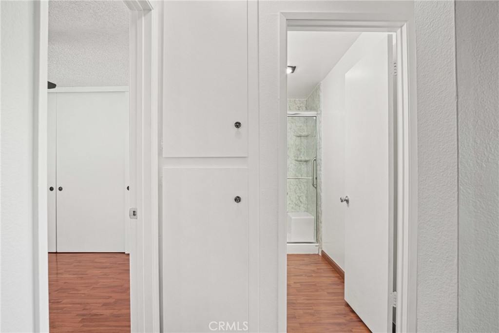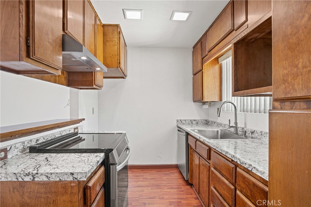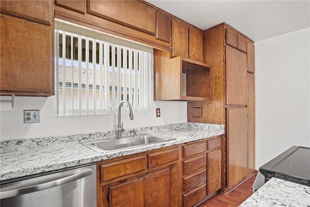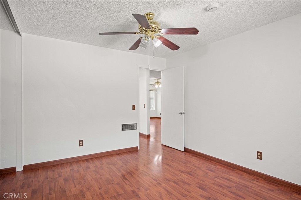 Welcome to this beautifully updated 2-bedroom, 1-bath home offering 825 square feet of comfortable living space in a gated community. Recently refreshed with new interior paint and laminate wood flooring throughout, this move-in ready unit combines modern upgrades with everyday convenience. The fully renovated kitchen features a brand-new countertop, oversized single-bowl sink with a stylish arching pull-out faucet, new garbage disposal, new dishwasher, and a new LG electric induction range with a brand-new range hood. There is also a designated cabinet space for a microwave with a seperate space for tackable Washer and dryer hookups to add extra functionality. The spacious living room includes a newer wall A/C unit and ceiling fan for year-round comfort. Updated window treatments with vertical blinds are included throughout. The bathroom was renovated approximately 2–3 years ago and features a walk-in shower, new vanity, updated light fixtures, new toilet, and upgraded exhaust fan. Brand-new smoke and carbon monoxide detectors have been installed in each bedroom and common sleeping areas for added safety. Community amenities include a pool, relaxing spa, lounge chairs with umbrellas, BBQ area, benches, and a convenient app-operated laundry facility located near the pool. A wonderful opportunity to own a thoughtfully upgraded home with resort-style amenities.