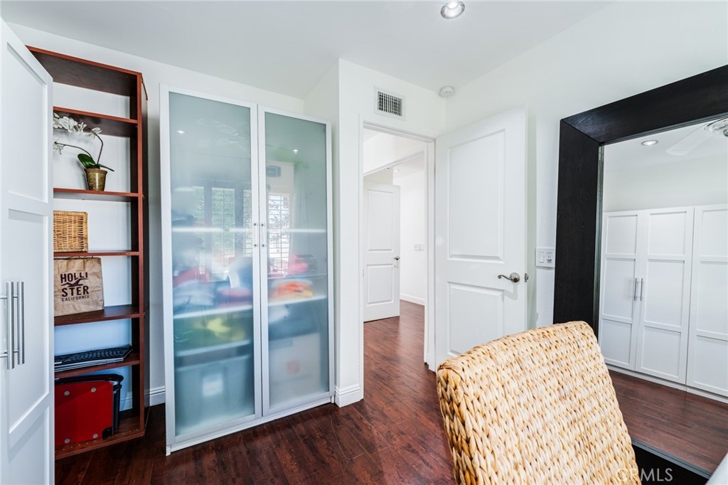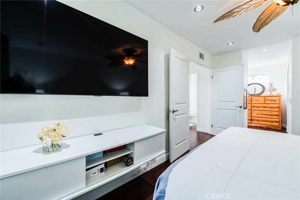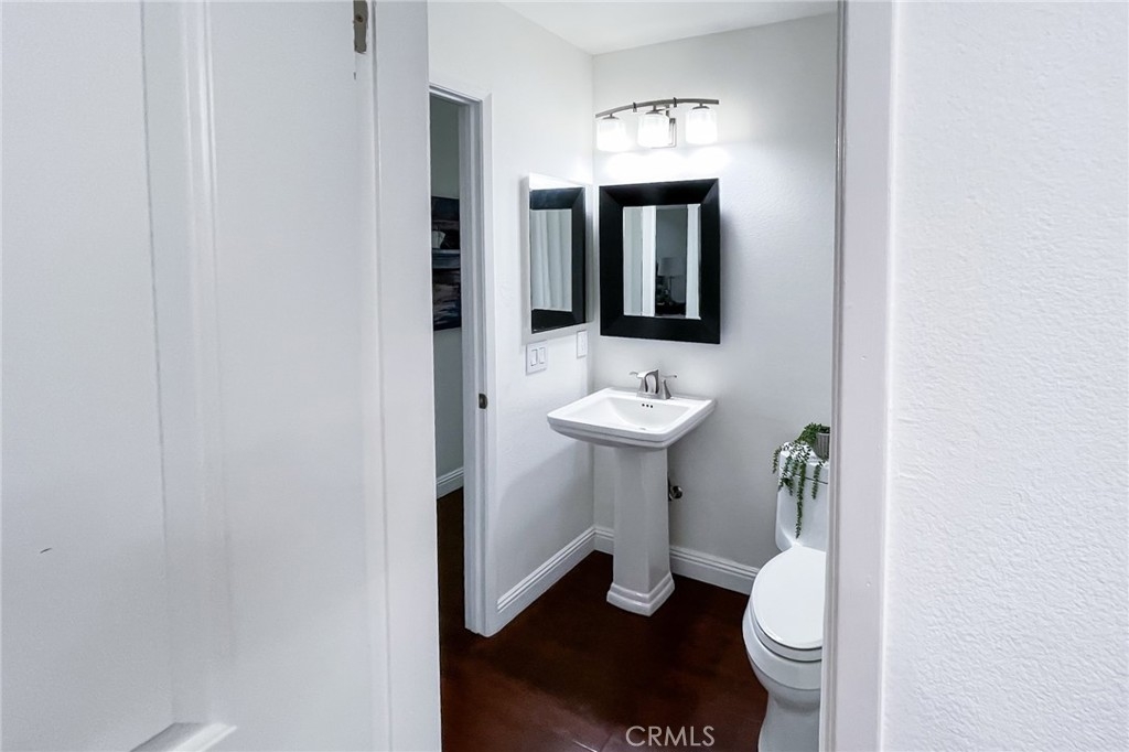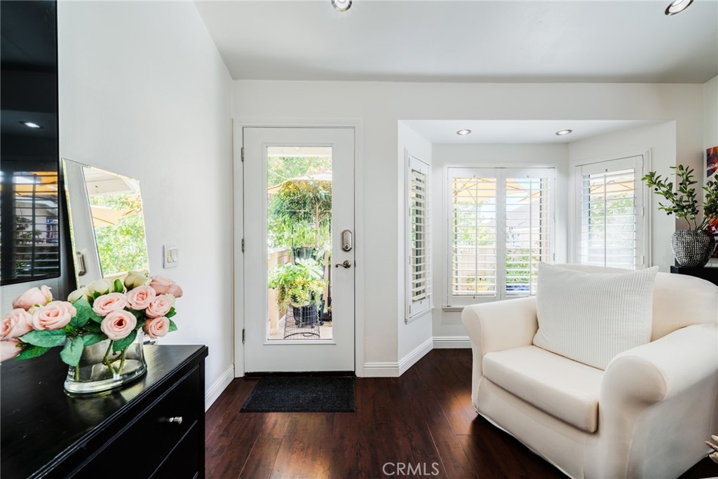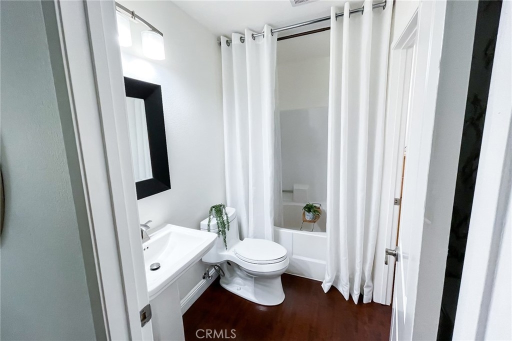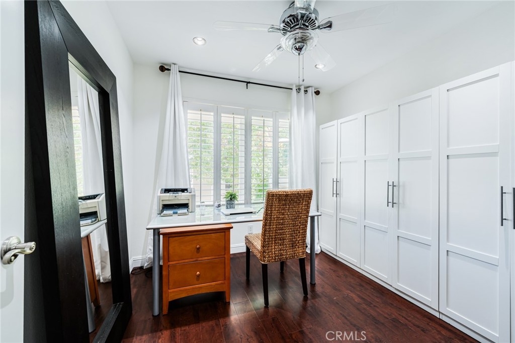 Turnkey Stanton home in the desirable CrossPointe Village Community! This community has a 24 hour security guard, it also boast 3 community pools and spas! Great entertainment for families in the Summer months! This Gorgeous end unit, offers 2 bedrooms and 1 bathroom. This open floor plan is ideal for entertaining and 1st time home buyers! The plan has cathedral ceilings, modern light fixtures, 4 inch baseboards, laminate flooring, recessed lighting, shutters throughout and ceiling fans in each room. The second bedroom can be used as an office or cozy loft area, perfect for reading. This home is conveniently located close to award winning schools, plenty of shopping and dining options, and only minutes away from the 22, 55 and 405 freeways. This property wont last!