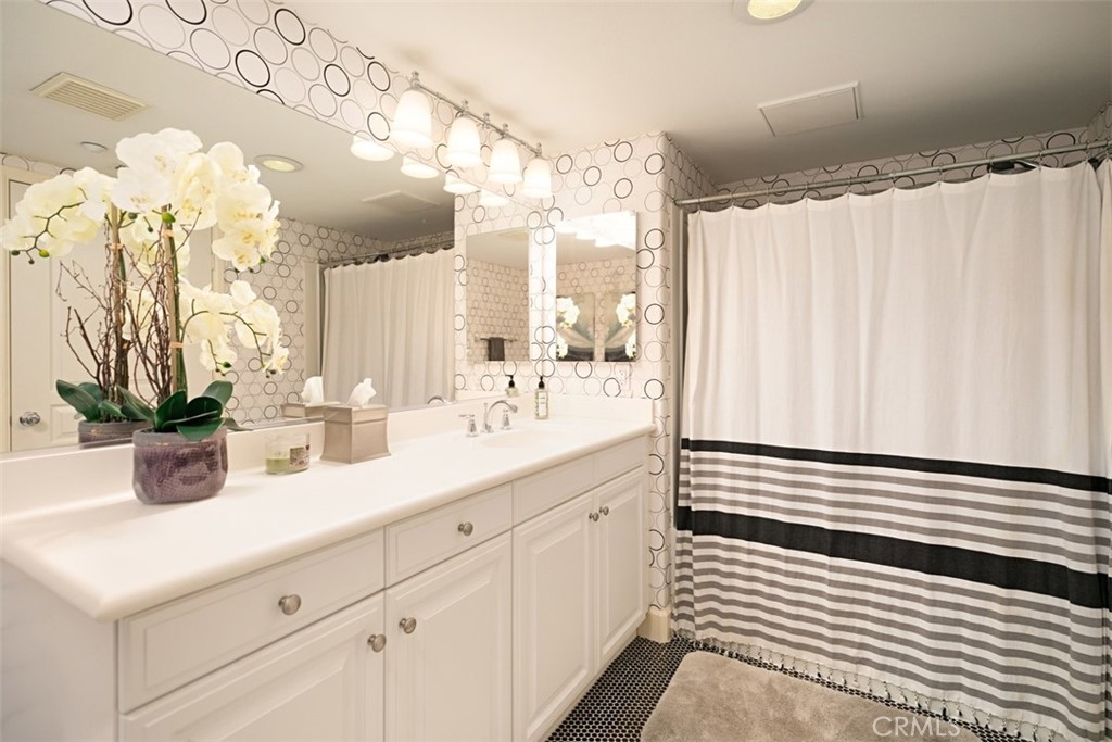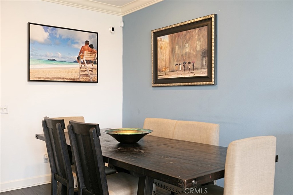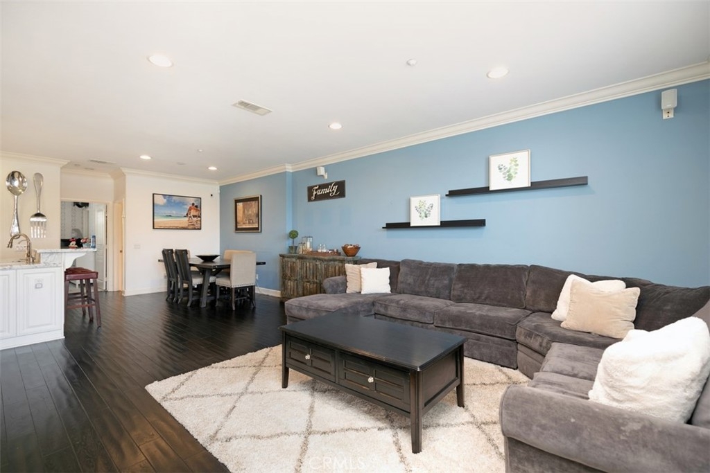 Welcome home to 8008 Torino at the Palazzo! This beautifully upgraded model home offers three levels of living spaces in the heart of Stanton, California. As you enter, you're greeted with a spacious entry with a first level bedroom with ensuite bathroom. There is direct access to your laundry room and 2 car garage. Head upstairs to your main floor open space living room, dining area, kitchen with stainless steal appliances and island, and deck looking into the surrounding neighborhood and shops. The second bedroom is also on this floor with attached full bathroom. Head upstairs to the first floor to find the large master suite with en-suite bathroom and loft. The home was once a builder's model home with beautifully upgraded wood flooring and plush carpeting throughout the home, wall paper, paint and trims. The HOA offers community pool with spa and bbq for enjoying those many warm sunny days. Come check out this beautiful home before it's gone!
