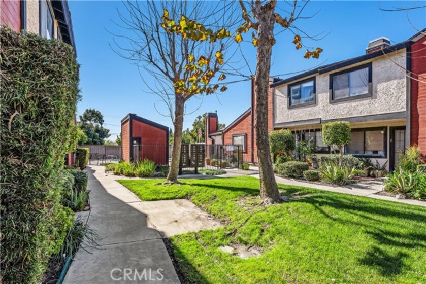 Welcome Home. Tucked Away Within A Quiet, Gated, And Beautifully Maintained Community, This Charming End-Unit, Two-Story Condo Townhome Offers Comfort, Privacy, And Everyday Convenience In One Inviting Setting. Step Inside To A Light-Filled Living Space Where The Cozy Fireplace Becomes The Heart Of The Home—Perfect For Relaxed Evenings Or Gathering With Friends. The Thoughtfully Designed Layout Includes A Convenient Half Bath On The Main Level, Ideal For Guests, While Central Air Conditioning Keeps The Home Comfortable Year-Round. Upstairs, You’ll Find Two Spacious Primary Suites, Each Designed As A Private Retreat. Both Bedrooms Feature Vaulted Ceilings, Creating An Airy, Open Feel, Along With His-And-Her Closets That Offer Generous Storage And Everyday Ease. Whether Used As Dual Primary Bedrooms, A Guest Suite, Or A Home Office Setup, The Flexibility Here Is Unmatched. The Two-Car Garage Provides Direct Access To Both The Home And The Backyard, Adding Convenience And Functionality, With Laundry Hookups Located In The Garage For Practicality. Outside Your Door, Enjoy The Serenity Of The Community’s Resort-Style Pool And Spa, Perfect For Unwinding After A Long Day. Best Of All, This Home Is Ideally Located Within Walking Distance To Church, Stater Bros., And Popular Asian Markets, Blending Peaceful Living With Everyday Accessibility. The HOA Includes Water And Trash, Offering Added Value And Ease Of Ownership. This End-Unit Gem Offers The Perfect Balance Of Comfort, Location, And Lifestyle—A Place Where You Can Truly Feel At Home From The Moment You Arrive