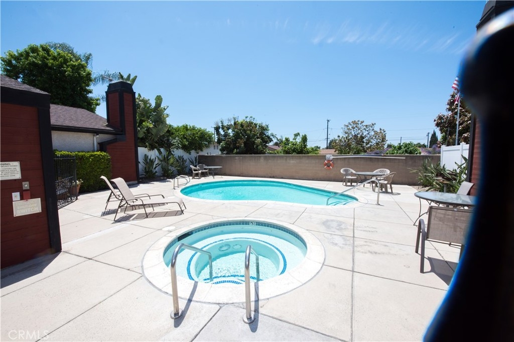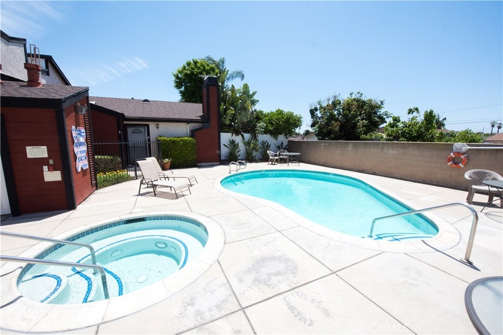 Welcome to the gated community of Chapman Villas. This beautiful two story townhome has no one above or below. With 2 bedrooms, 2.5 baths and 1,168 SqFt of Living Space. Featuring laminate wood floors, recessed lighting, updated kitchen with granite counters. Upstairs enjoy the benefits of Dual Master Bedrooms with vaulted ceilings and mirrored closet doors. Laundry hookups are located in the 2 car garage. Enjoy a book by the cozy fireplace after a long day, or have a BBQ in the private enclosed patio just outside the dining area. Have fun in the Community Pool and Spa. This home really does have it all! Perfectly located near great dining, shopping, schools, and freeways. Seller to credit buyer $2500 towards closing costs. No other concessions or credits will be given.
